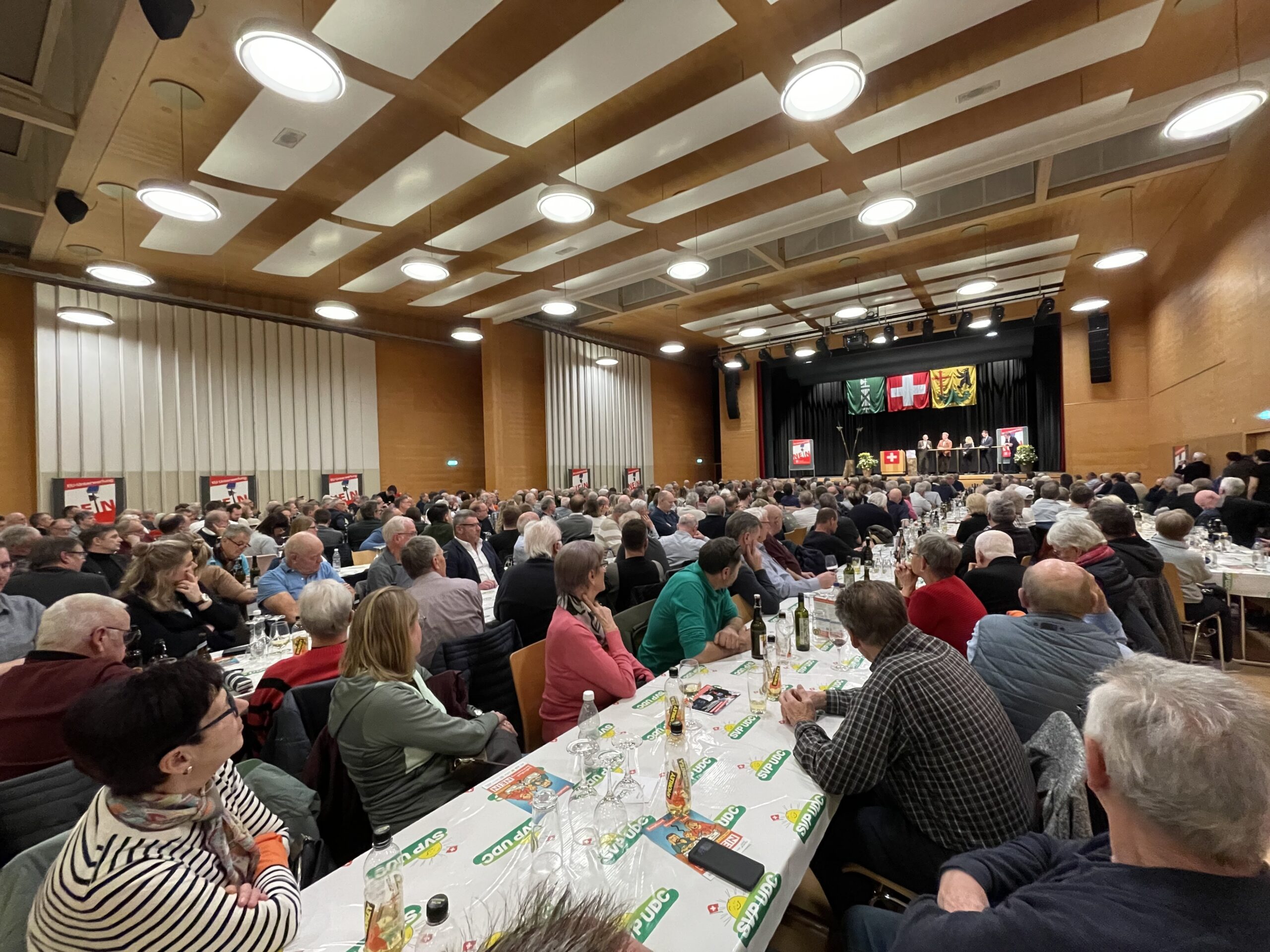 Die Kantonalparteien der SVP St. Gallen und Thurgau luden, unterstützt von der Ortspartei Gossau, zu einem grossen Informationsanlass zum EU-Vertragspaket ein. Entsprechende Anlässe finden verteilt über das ganze Land statt. Das breite Interesse zeigte sich am riesigen Besucheraufmarsch. Schon mehr als eine Stunde vor dem Anlass füllte sich der Fürstenlandsaal und am Schluss waren es über 800 Bürgerinnen und Bürger, die sich einfanden.