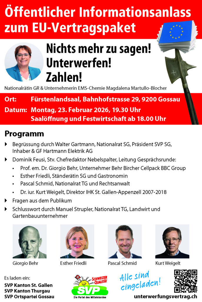 Öffentlicher Informationsanlass zum EU-Vertragspaket mit Magdalena Martullo-Blocher